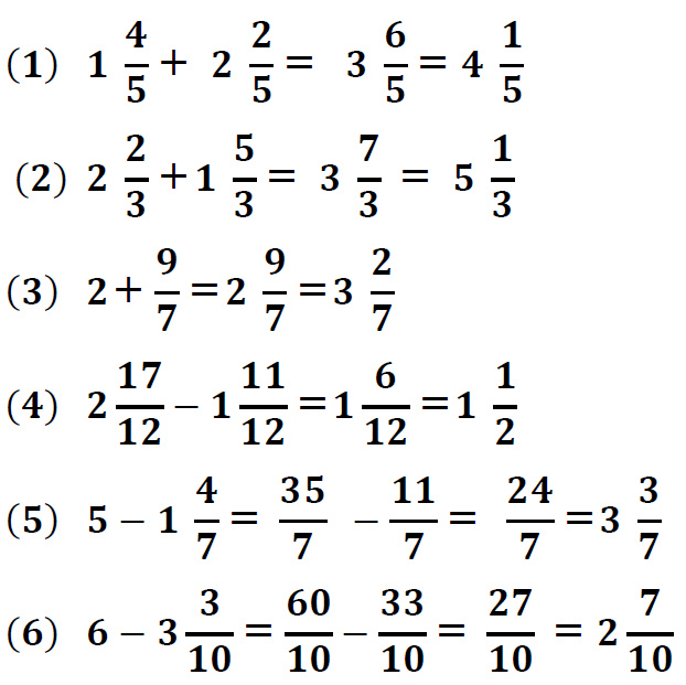 次の分数の計算をしなさい。答えは必要に応じて帯分数で答えなさい。
