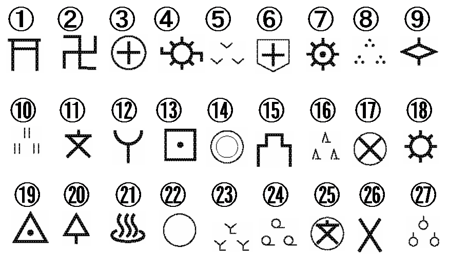 【問題】以下の①~㉗の地図記号は何を表しているのか?