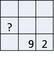 【問題】1~9までの数字を下のマスに埋めて縦,横,斜めを足すとすべて等しくなるようにしたい。?に入る数字は?