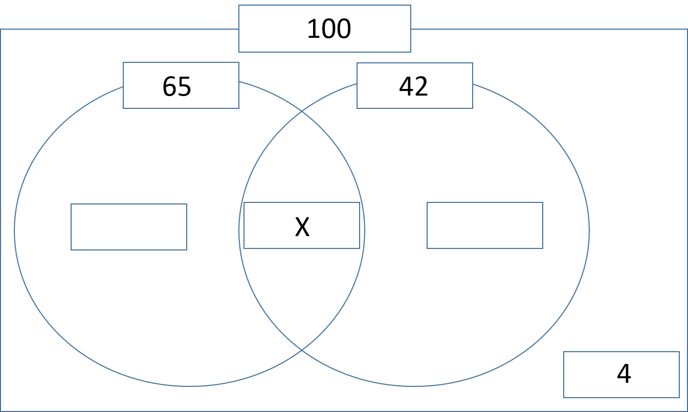 - 全体が100%より、どちらもかかったことがある人の人数をX%と置くとベン図より