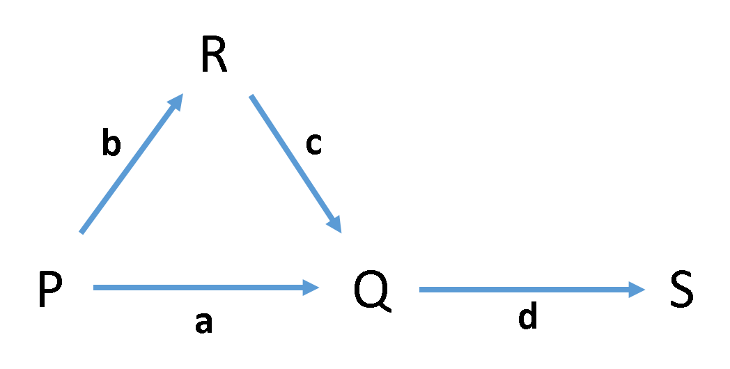 【問題】下図はP業者からR業者,Q業者を経由してS業者に納品されるまでの図である。a,b,c,dは比率を示している。